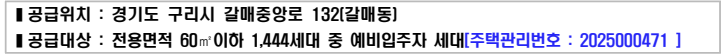 - 모집공고일 기준으로 수도권(서울·경기·인천) 거주인 자 (주민등록표 기준)