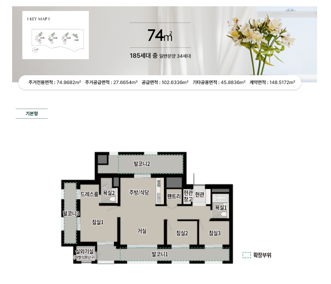 • 전용면적: 74㎡ / 84㎡(A·B타입)
