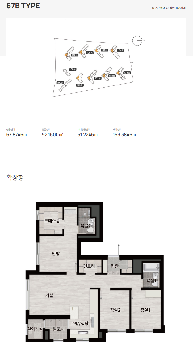- 전용면적 구성: 67㎡, 76㎡, 84㎡ 타입 위주