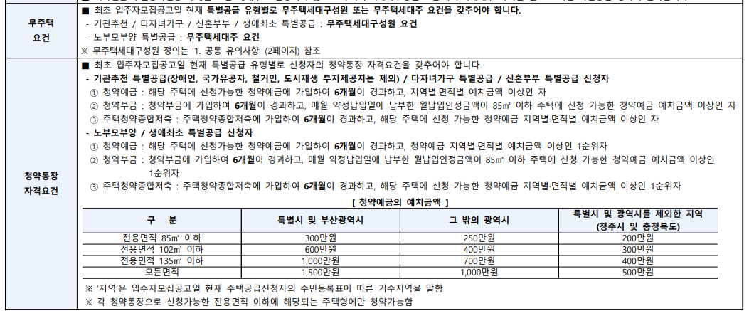 - 청약통장 가입자여야 할 가능성이 높습니다 (특별공급 / 일반공급 구분)