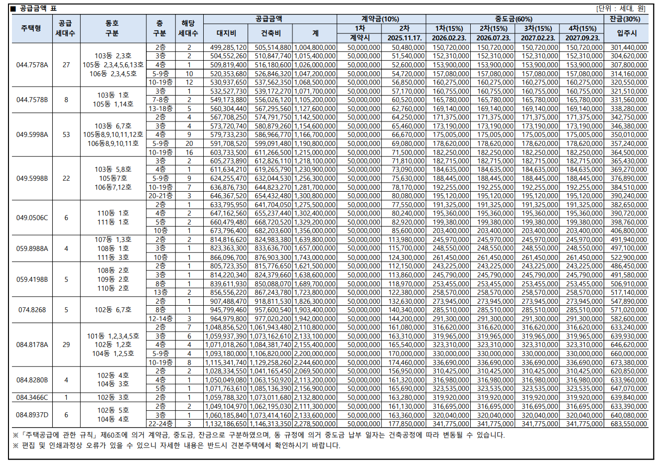 따라서, 실제 분양가는 공고문 발표 시점에 확정되겠지만, 위 예상치를 기준으로 자금 계획을 잡아두는 것이 유리합니다.